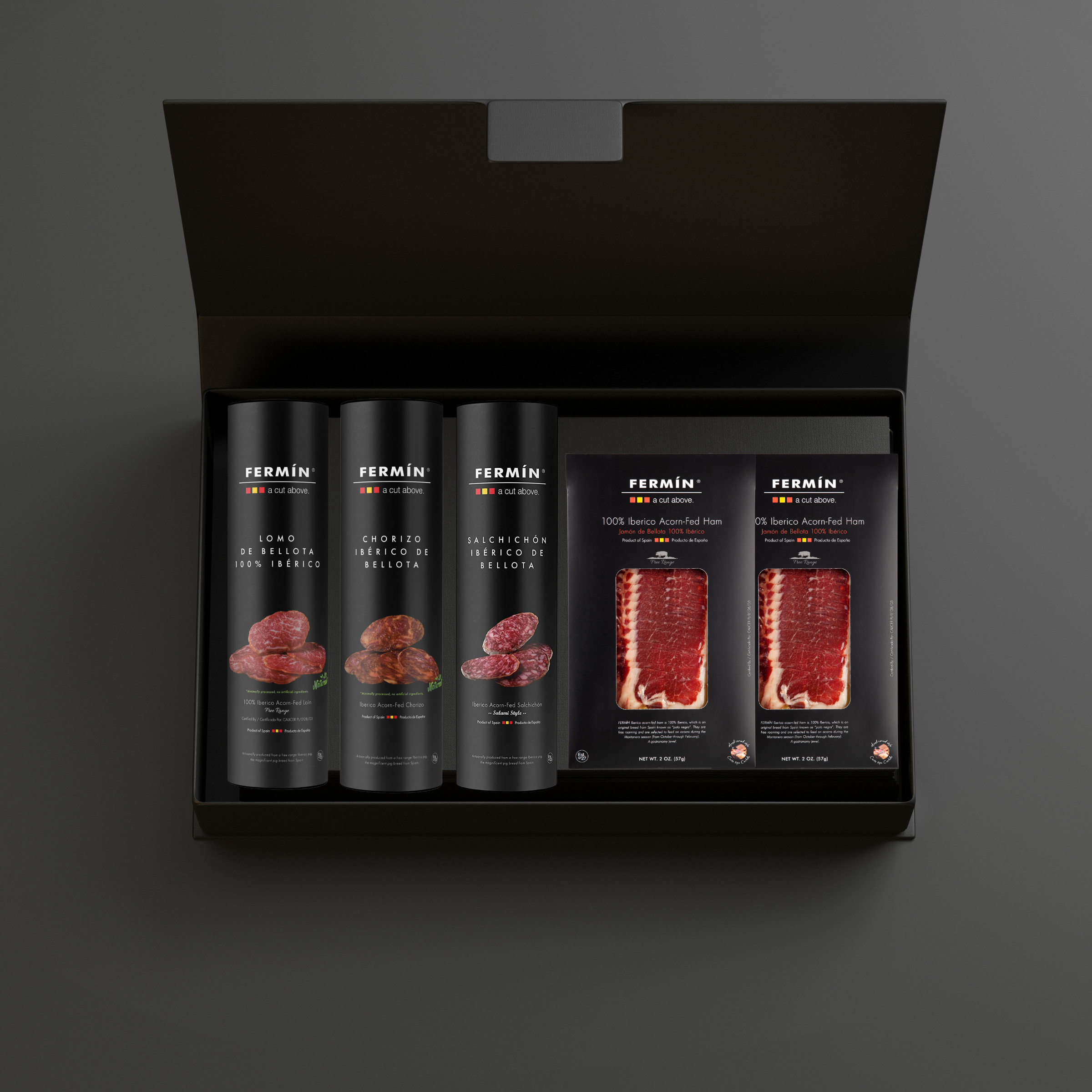 Indulge in the ultimate gift for gourmet enthusiasts with The Black Box. This exclusive collection features the finest 100% Iberico Acorn-Fed products from the esteemed Fermin brand, offering a true taste of Spain’s culinary excellence. Perfect for gifting or savoring yourself, this luxurious set embodies quality and tradition in every bite.