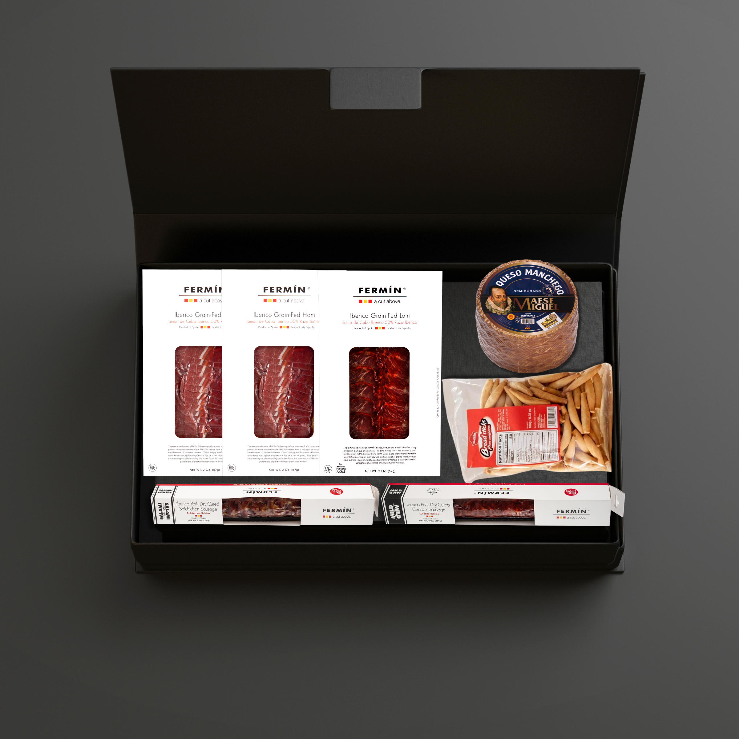 - 2 Iberico Ham Sliced Packages (2 oz each): Delicate, rich slices of Fermin's Iberico ham, offering a truly indulgent taste of Spain’s renowned cured meats.