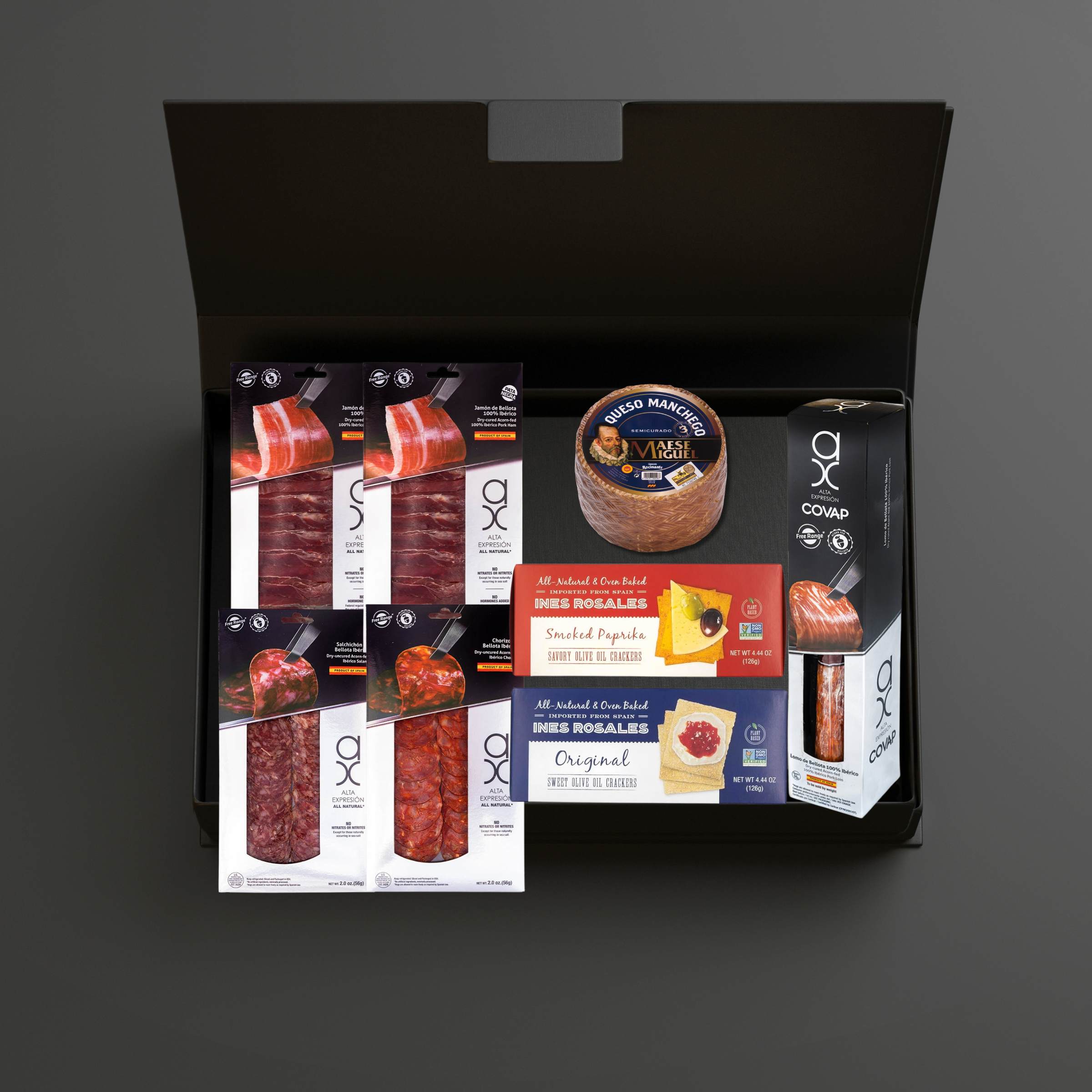 Delight in The Black Box, a luxurious collection of Spain’s finest meats, cheese, and artisanal treats.