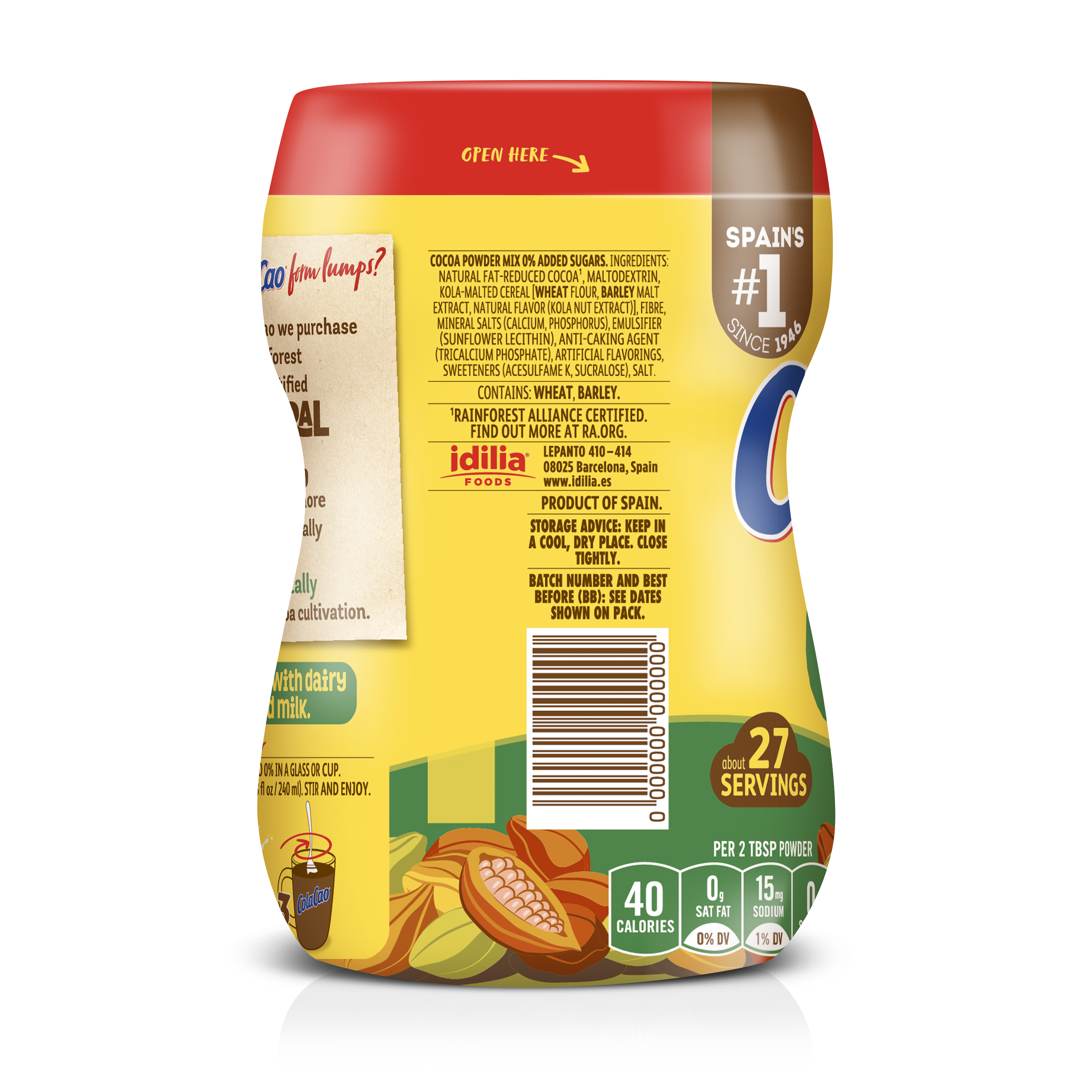 ColaCao 0% Added Sugars Cocoa Powder Mix – Natural Cocoa Drink Mix, 11.5 oz (325 g), Approx. 27 Servings, Hot or Cold Beverage
