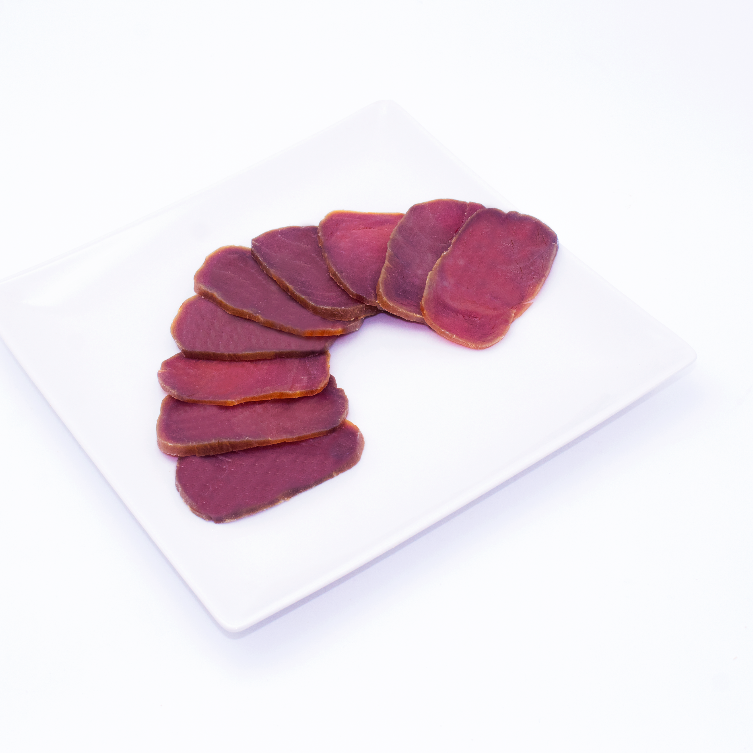 Experience the exquisite taste of Mojama Dry-Cured Tuna Jerky, a traditional Spanish delicacy made from the finest cuts of tuna. Carefully salted and air-dried using time-honored methods, this premium jerky offers an intense flavor and firm texture that appeals to seafood lovers and gourmet enthusiasts alike. Perfect for tapas, charcuterie boards, or simply enjoyed on its own, HERPAC ensures you get a high-quality product crafted with passion and expertise.