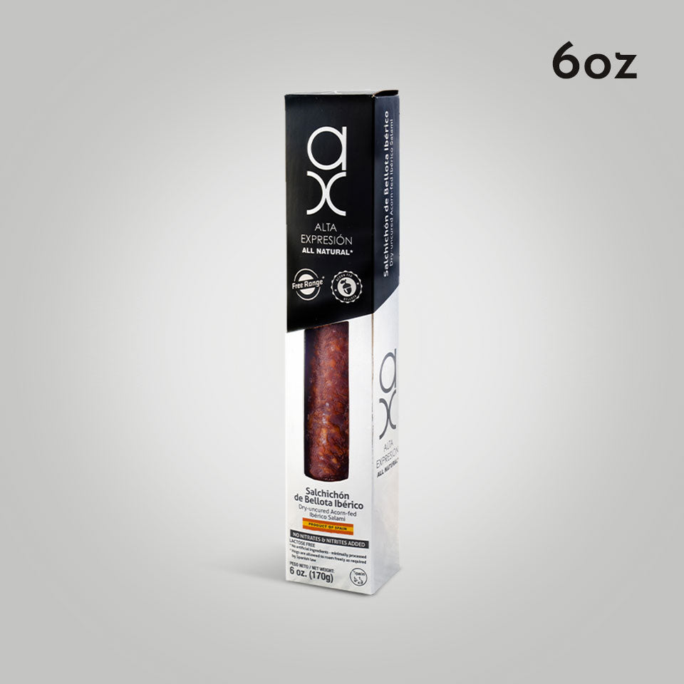 - 100% Iberico Acorn-Fed Salami (6 oz): A rich, smooth salami crafted from the finest acorn-fed Iberico pork, offering an intense and nutty flavor.