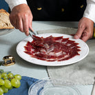 Carefully hand-curated and aged to perfection for an extended period in the optimal conditions, this ham boasts a depth of flavor that is both robust and nuanced. Its marbling and unique nutty undertones elevate every slice, leaving a lingering sensation that captivates the palate.