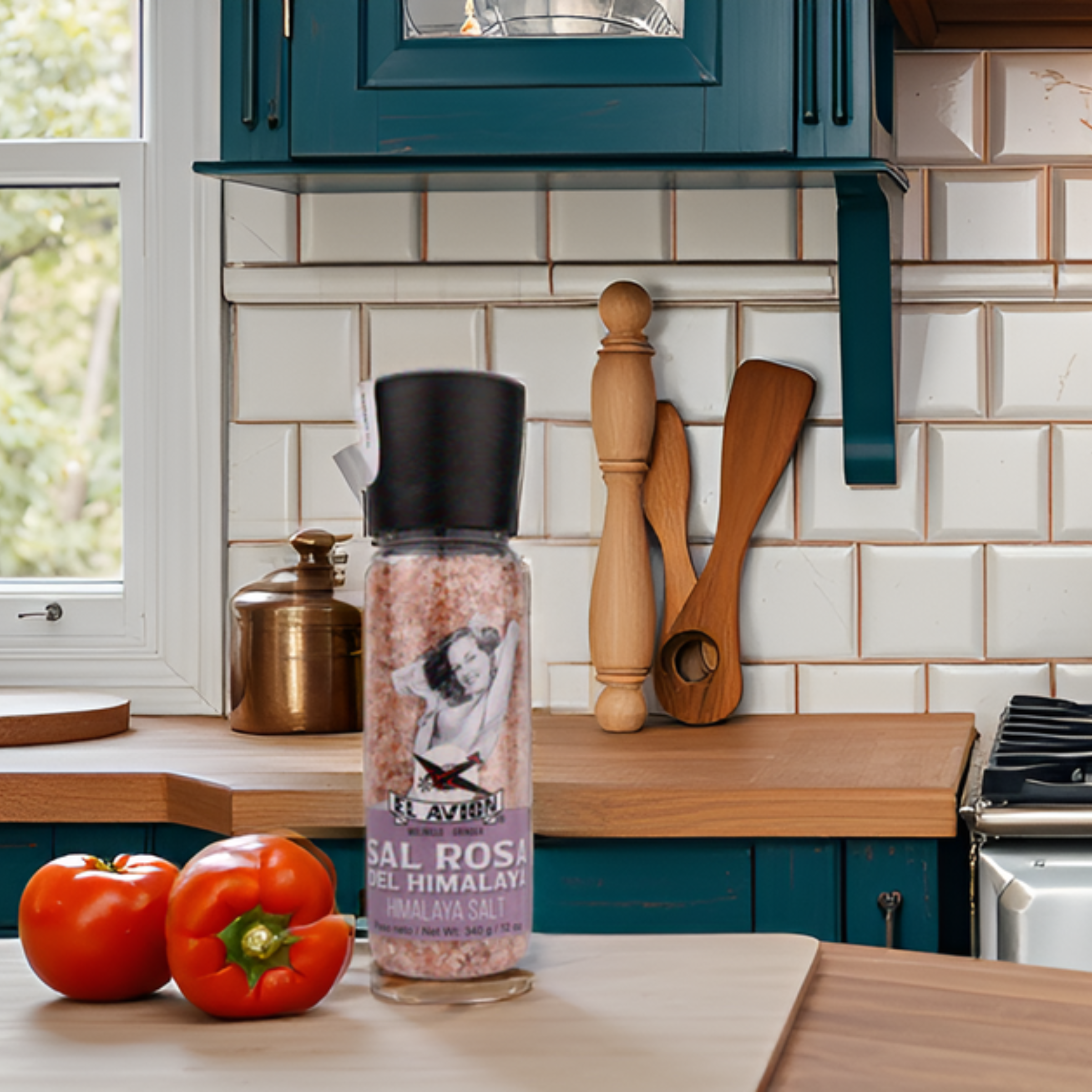 Natural Pink Himalayan Cooking Salt in Refillable Grinder - 12 oz Healthy Unrefined by El Avion