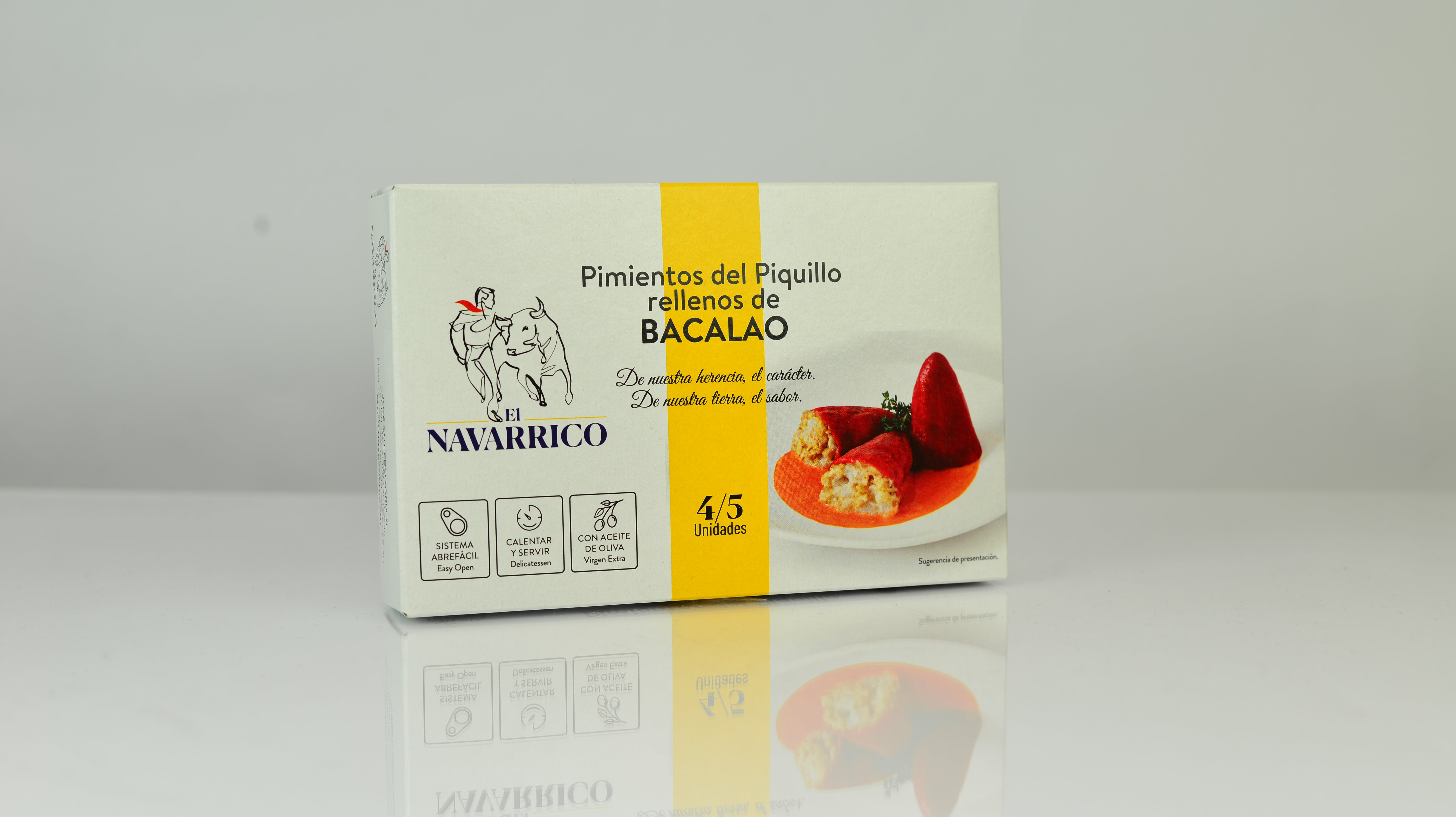 Salted cod is cooked in a cream sauce made of fresh milk, olive oil, and spices and stuffed into whole fire-roasted piquillo peppers. This tapa is ready to eat in minutes, just gently heat the cod stuffed piquillo peppers until warmed through and enjoy it!.