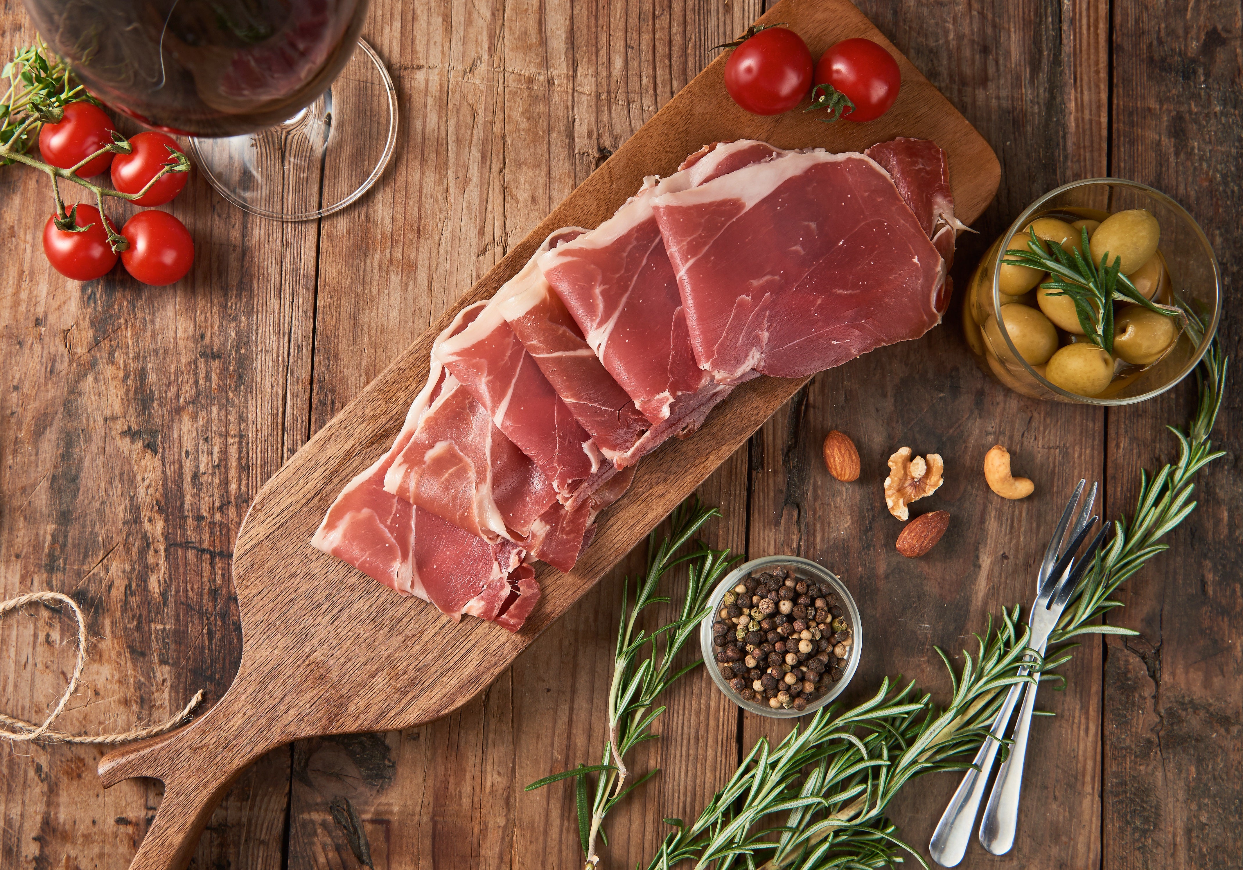 Jamon Serrano is the most popular cured meat in Spain. It comes from white pigs, and usually, it's been aging between 7-16 months.