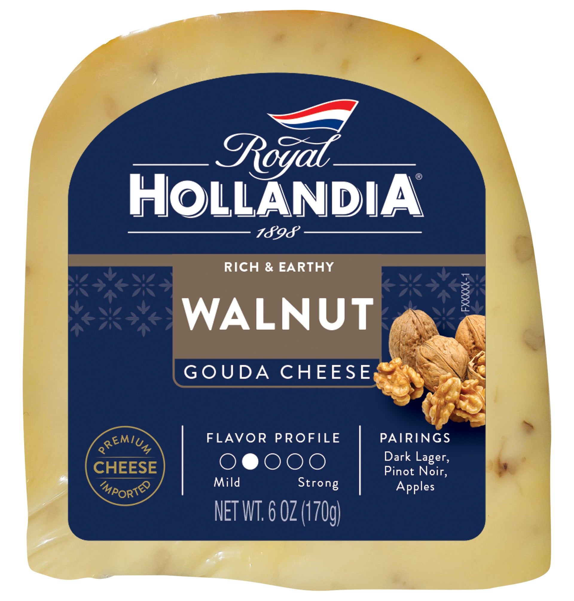 Walnut Gouda (6 oz) – Creamy Gouda with pieces of walnuts, delivering a delightful crunch and nutty richness.
