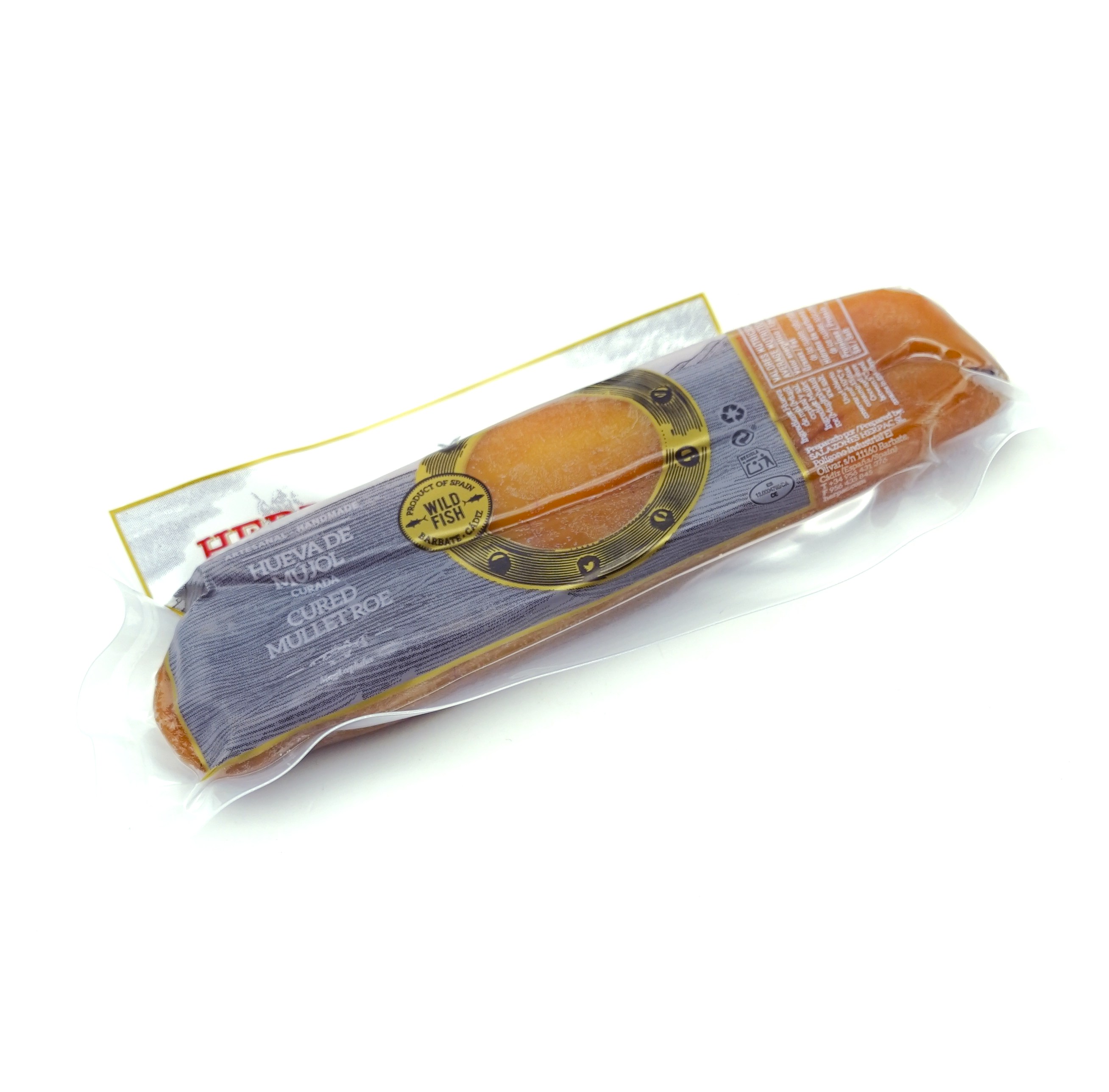 Discover the authentic taste of Cured Mullet Roe (Huevas de Mujol) by HERPAC. This Spanish delicacy is carefully crafted using traditional curing methods to preserve the intense flavor and unique texture of the mullet roe. With its bold, savory taste and firm yet tender bite, it makes an excellent addition to gourmet tapas, pastas, or as a topping for salads. HERPAC's dedication to quality ensures you enjoy a truly premium culinary experience with every bite.