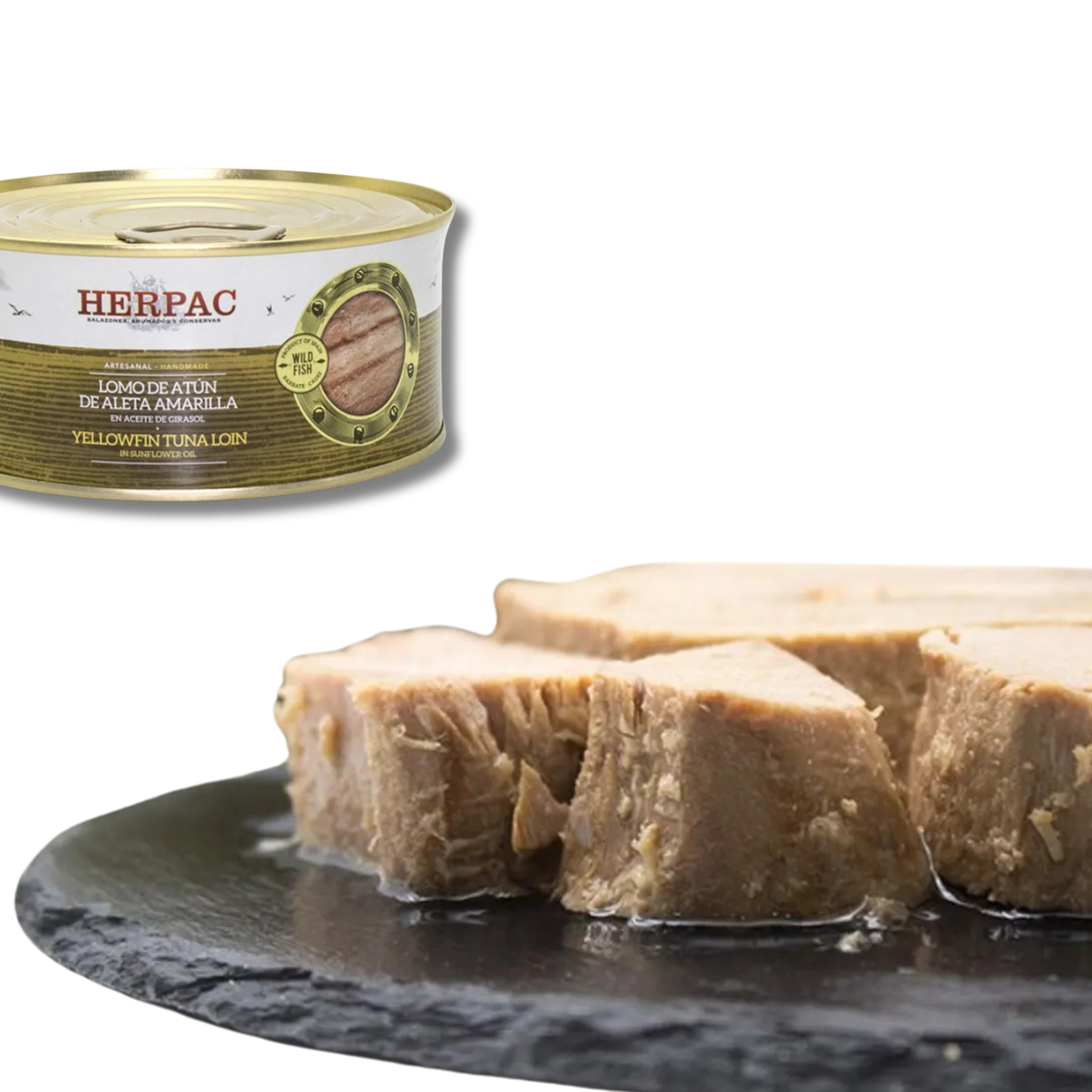 Yellowfin Tuna Loin in Sunflower Oil – Wild-Caught, Product of Spain – Gourmet Canned Tuna, 942g (33.2 oz / 2.08 lbs) – Family-Size by Herpac