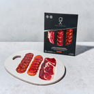 Premium Ibérico Sampler – A trio of Spain’s finest cured meats featuring 100% acorn-fed Ibérico ham, Ibérico loin, and Ibérico chorizo. Machine-sliced for convenience and consistent quality.