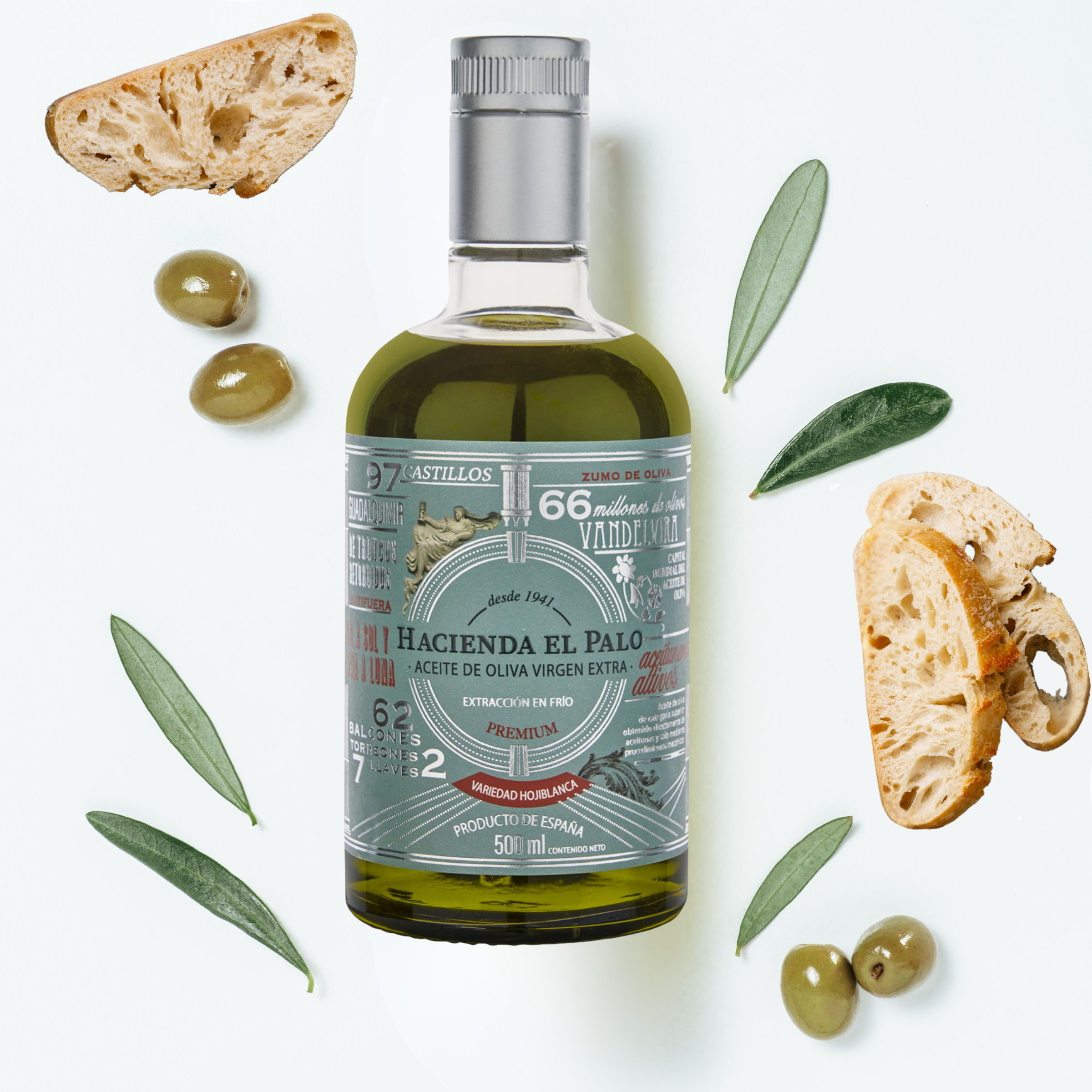 Hacienda El Palo Premium Hojiblanca Extra Virgin Olive Oil – 500ml (16.9 fl oz) – First Harvest, Cold-Pressed, Spanish Gourmet EVOO