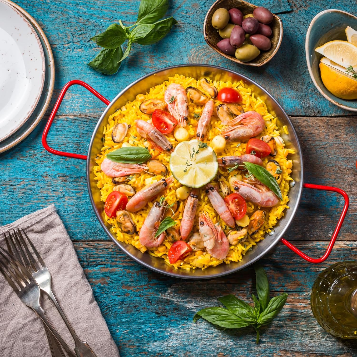 Premium Authentic Paella Kit with Traditional Pan and Ingredients/Traditional Design, Serves 4-6.