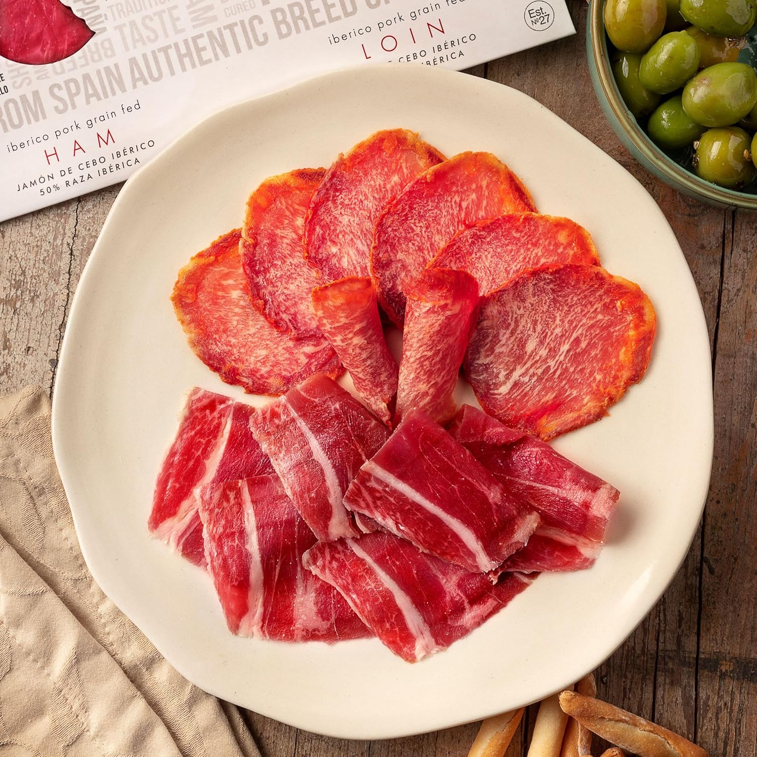 - Authentic Spanish Tapas Selection – Combines Manchego D.O.P. cheese with Ibérico ham and Ibérico loin by Fermín for a complete Spanish tasting experience.