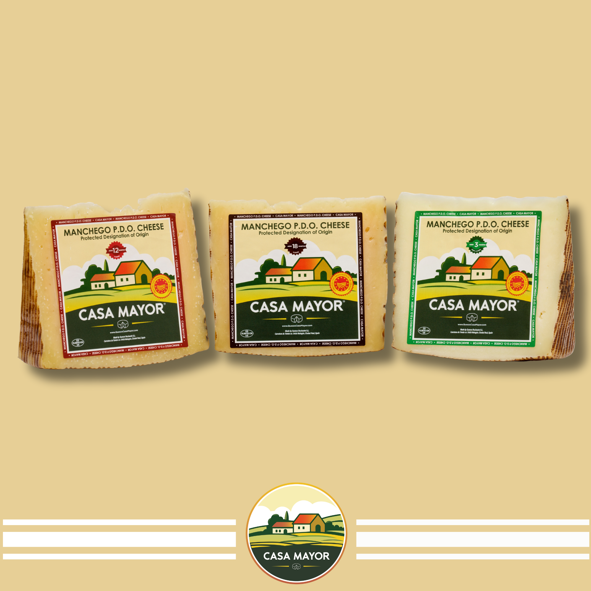 Manchego Cheese D.O.P – Ages Trio Pack (3-Month, 12-Month & 18-Month Wedges) – 3 Wedge Assortment – Spanish Sheep’s Milk Cheese by Casa Mayor
